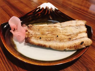 家内には快気祝だからとうな重をとらせ、私はミニうな丼と白焼き(半分)を注文しました。白焼きは山葵・抹茶塩・醤油でいただけましたが、アツアツでふわふわでした。美味しい脂も適度に感じられる絶品でした。うな重はさすがのボリュームでしたが、ミニうな丼でも味は同じ! ふっくらと仕上げた焼き方が、私の好みでした。- 旅行時期