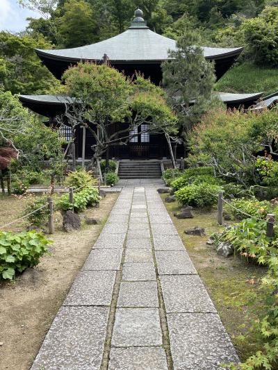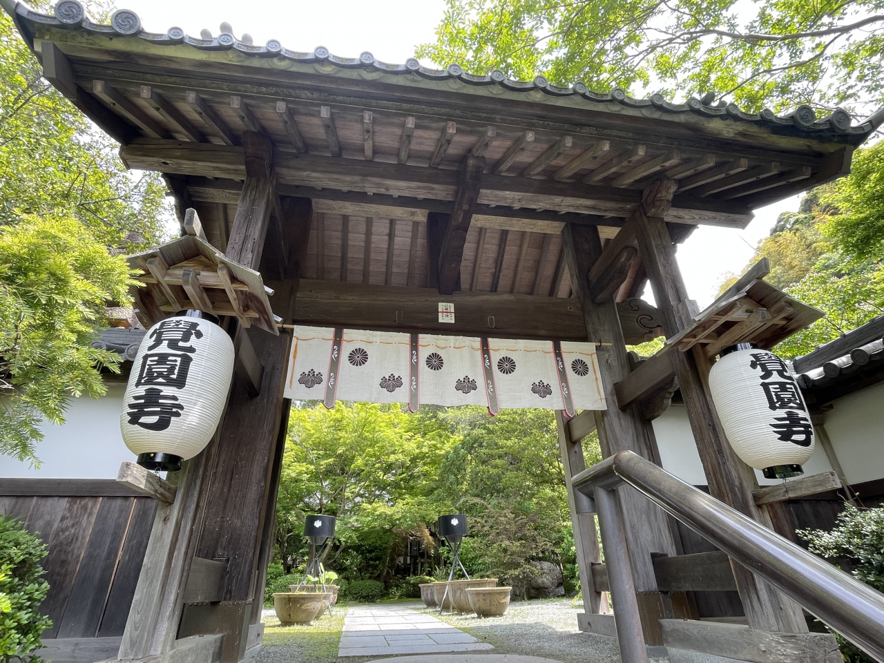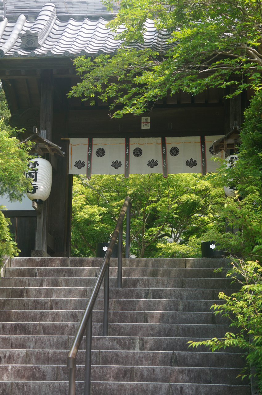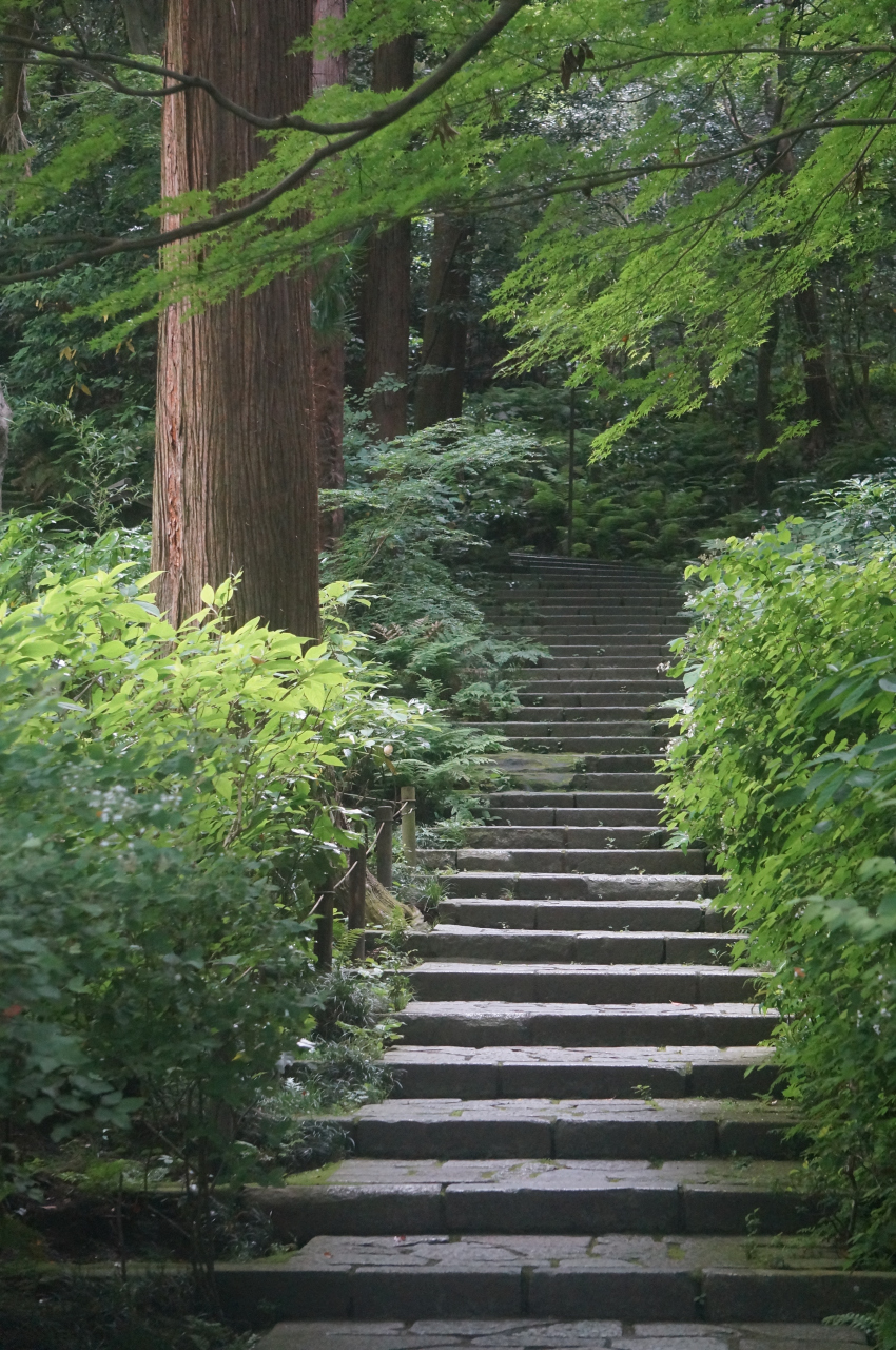 大塔宮鎌倉宮から永福寺跡を左手に見ながら進むと総門が見えてきます。歴史の教科書にも登場する、円覚寺や南禅寺などの住職を歴任した夢窓国師によって創建された古刹です。鎌倉公方足利家四代の菩提所でもあります。総門の先で拝観料を納め、ゆったり平坦な石畳の道を進んでゆくと、その奥に続く石段があります。