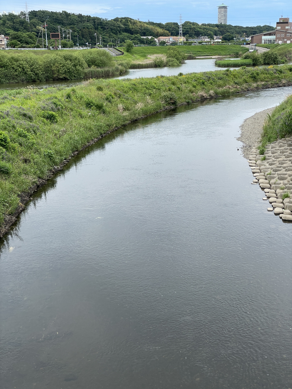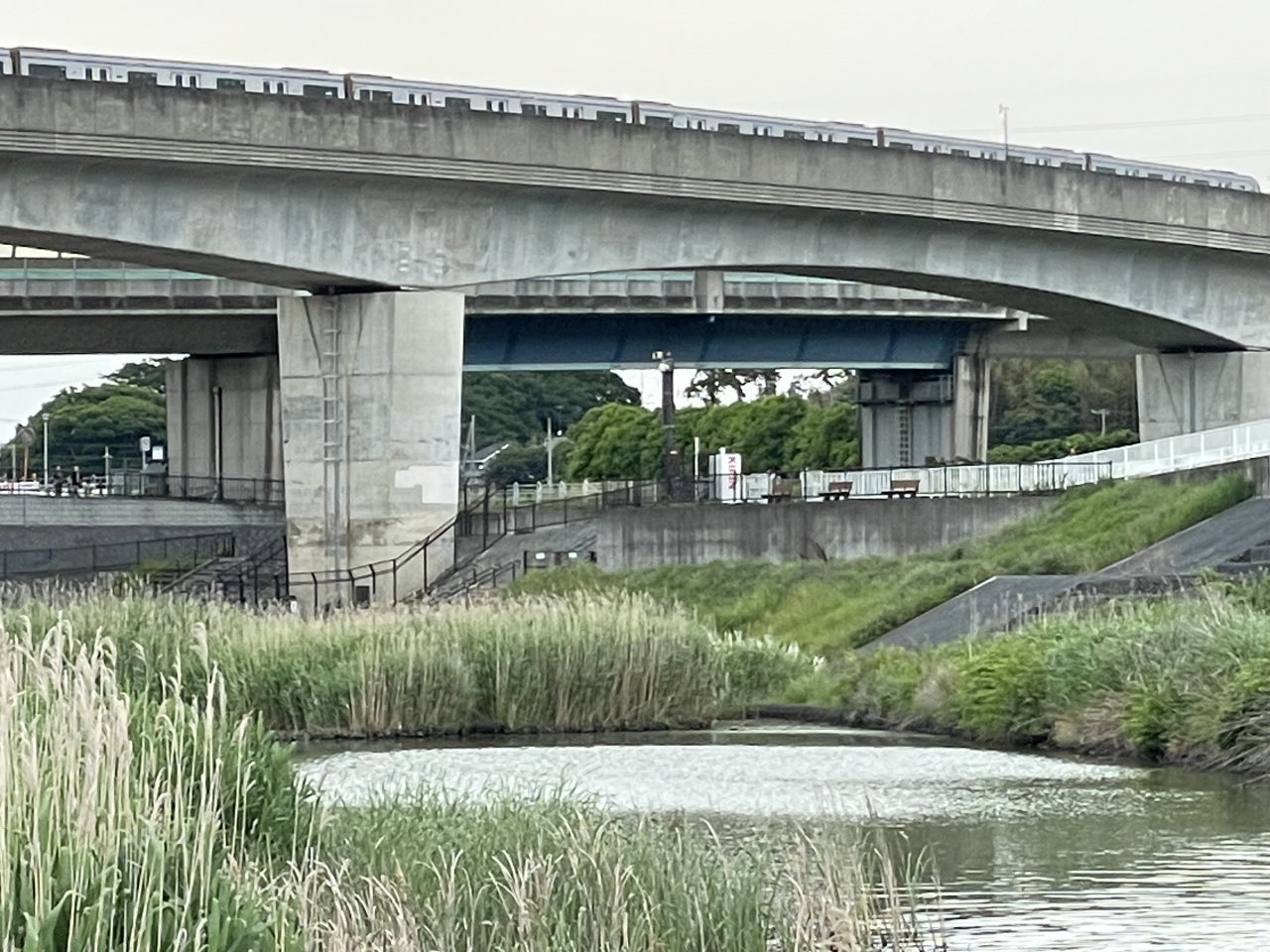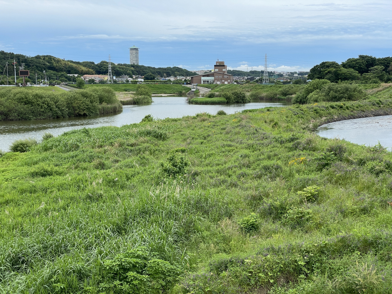 下飯田エリアに架かる鷺舞橋から戸塚方面の眺めにも癒やされます。正面に以前の横浜ドリームランドのシンボルであったホテルエンパイア(現横浜薬科大学図書館棟)も懐かしく眺められました。