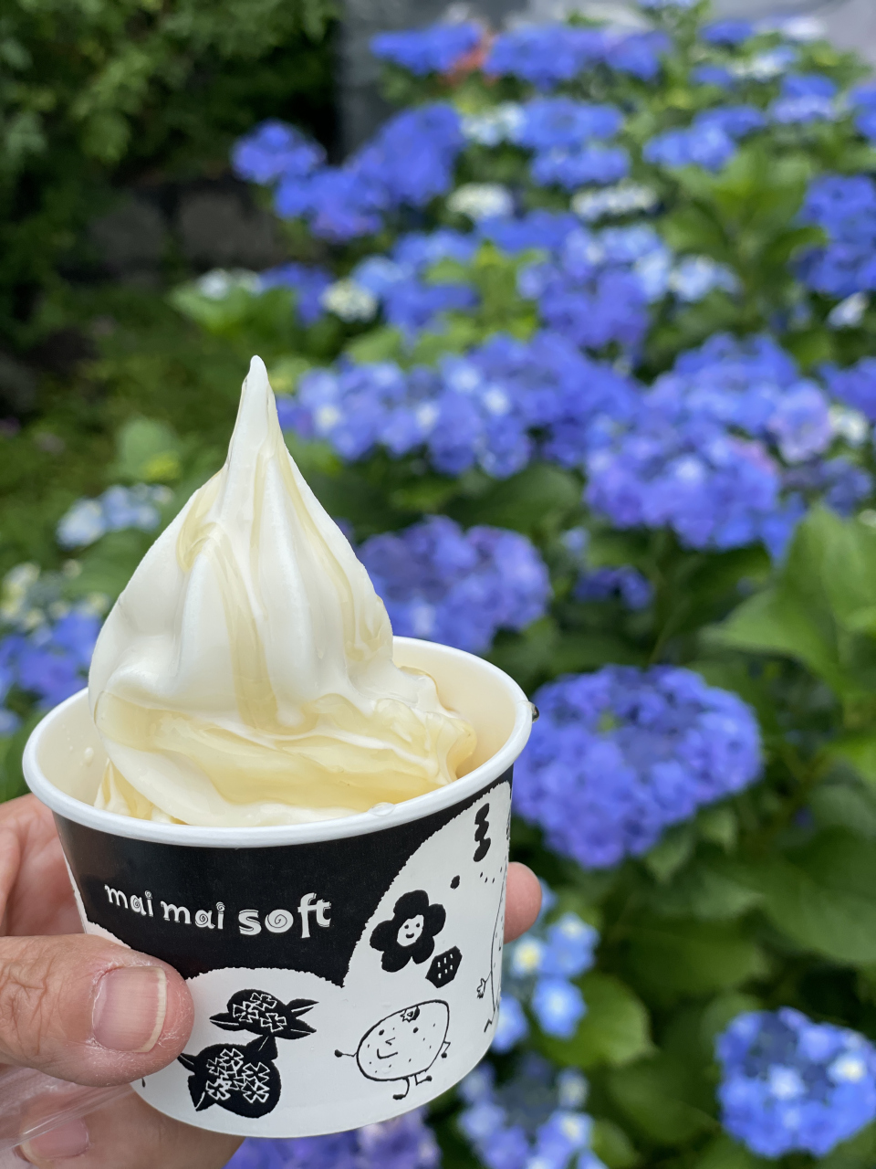 P2近くのあしがり郷には道の駅的な店舗「アトリエ ハッコ」もあり、ソフトクリームなどがいただけました。