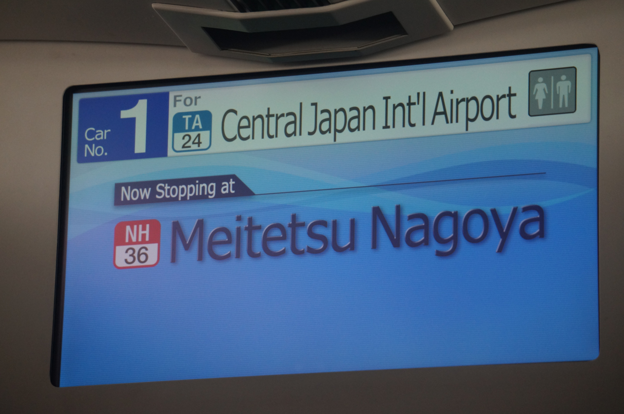 地下駅を出発するとほどなく地上へと出て、名古屋本線の金山・神宮前に停車した後は、常滑線・空港線内には停車せず、終点の中部国際空港までノンストップです。到着直前には空港島へ向けて海を渡りますが、降機音楽のようなBGMも流れていました。- 旅行時期