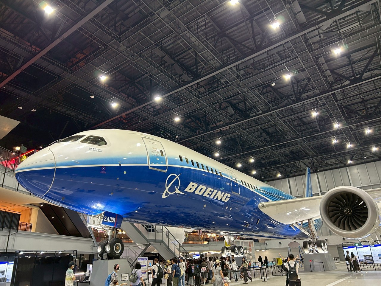 パネルや映像でもボーイング787型機の開発ヒストリーや飛行機の仕組みについて学ぶことができますし、空港や航空関係の仕事についても紹介されていました。炭素繊維の軽さには驚きます。