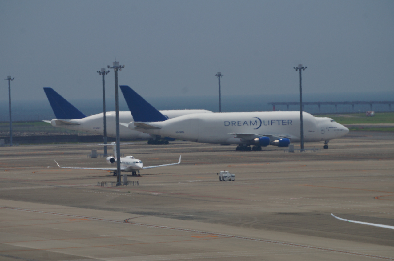 セントレアの第1ターミナル4階にある展望デッキ「スカイデッキ」から飛行機の離着陸を見学。強い陽射しを受けながらセンターピアを進んで行くと、国際線側の彼方にセントレアでしか見ることができないボーイング747LCF「ドリームリフター」が2機駐まっており、超デカい! そしてセンターピアの最先端からは滑走路が極めて近い!! ここまで滑走路に近づける展望デッキは、他の空港には無い気がします。全日空機のゴーアラウンドも見られましたが、暑いので先端の入口から屋内へ退避。此処はセンターピアガーデンと呼ばれる場所のようですが、紹介文に「心地よい静けさに包まれます。柔らかな日差しが降り注ぐ空間は、ほっと心やすらぐオアシスのよう」とある通り、ほとんど人がおらず冷房の効きも良いので、快適な空間でした(笑)
