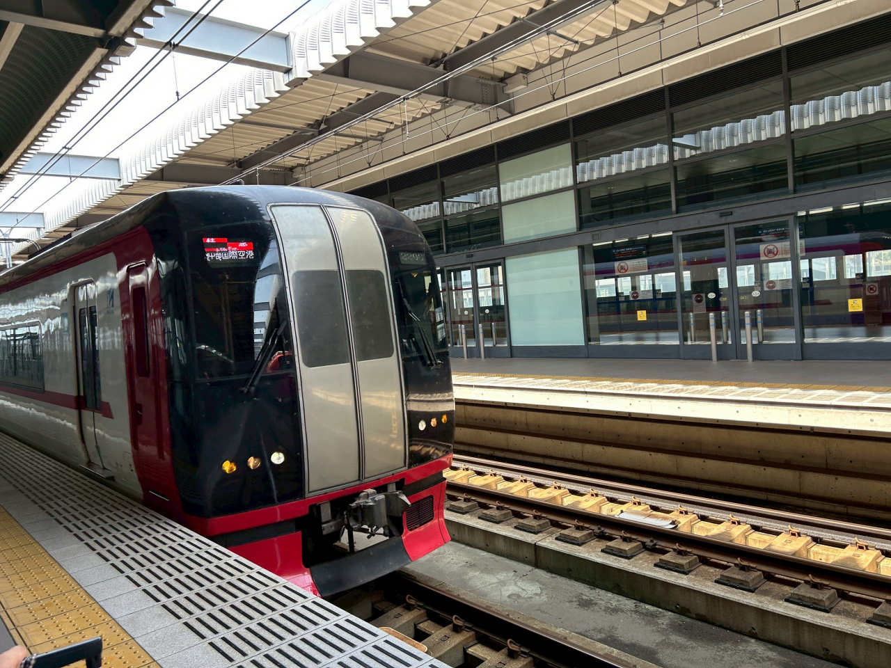 此処は始発駅なので、名古屋市内へ向かう時は特急の一般車で十分です。プラットホームの乗車口手前がガラスで仕切られており、到着直前まで涼しい空間で待機できる構造がかなり有り難かったです。2200系でしたが1200系パノラマスーパーだったら特別車両券(ミューチケット)を奮発したところですね。
