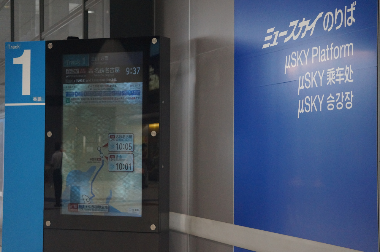 名鉄名古屋駅は、乗降客数が多い駅にしては少ない2線3面しか無い構造なので、頻繁に各方面ゆきの列車が出発します。豊橋方面への上り列車は4番線からの発車ですが、中部国際空港ゆきの2000系特別車両である空港特急ミュースカイの発車は3番線からです。チケットレスサービスで予約しておいた席に座りました。