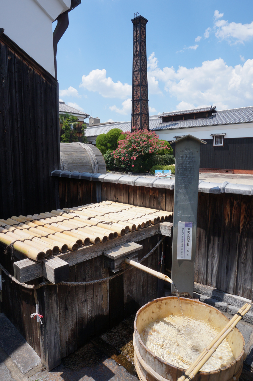 京阪電車の伏見桃山駅で下車し、伏見大手筋というアーケード商店街を通って伏水酒造小路へと入りました。さらに南下すると黄桜カッパカントリーがあったのですが、どこで試飲させてもらえるのかがいま一つ判らず、さらに竜馬通りを進んで豪川沿いに歩くと月桂冠大倉記念館がありました。こちらは入口もわかりやすく、展示も充実していました。大吟醸は相当みがくのだとは知っていましたが、実際に小さくなった米の姿を見ると、なんだか贅沢すぎてもったいない気持ちになりました。最後にコインを3つ渡され、3種類の試飲ができるのですが、私は甘口から辛口に進むように大吟醸等を選んで堪能しました。特別期間でもう1種類いただけたので、ほろ酔い気分となりました。扉の外の井戸からの仕込み水もチェイサーとしていただきました。