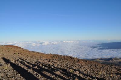 山頂からの風景は、文字通り息を呑みます。特に火口や噴火丘の方向を見つめていると、地球そのものの姿のようにも、また他の星にいるようにも感じられます。色も一体何種類あるのかわからないほど微妙な色合いです。一方、ハワイ島方向に眼を転じると、マウナケアやマウナロアの右に雲からひょっこり頭を出している恥ずかしがりの山フアラライを発見することが出来ます。- 旅行時期