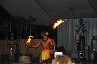 その後はポリネシアンショーの始まり。テーブルの位置も最高だったので、眼の前で次々とダンスが披露される迫力。最後にみんなを立ち上がらせて輪になって踊るダンシングタイム!! 日本人が多い3スターの部屋にもかかわらず、老若男女を問わず弾ける笑顔で踊っている。日本人って恥ずかしがり屋じゃなかったっけ?と思わず聞きたくなるほどの盛り上がり。いや~、楽しかった! 日本人をあそこまでハシャがせるプロの業に脱帽です。