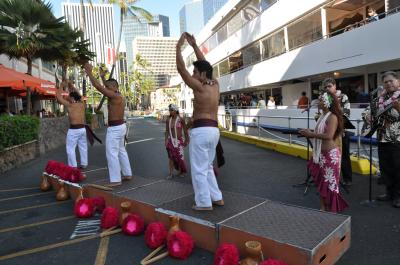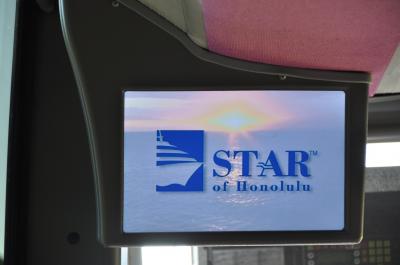 ハイアット・リージェンシーの裏道から送迎バスで運ばれている時は、イマイチ盛り上がらない感じ。アロハタワーが見えて降ろされたら、停泊中の大型客船シープリンセス号すら写真に撮れないほどの慌ただしさでウェルカムフラを横目に3スターの船室へ・・・。
