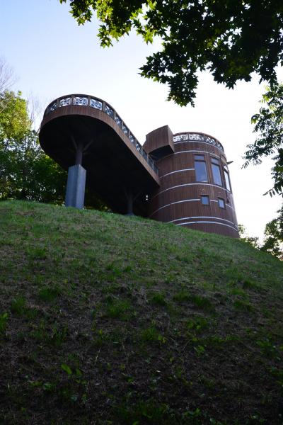 降りた客はぞろぞろとレインボーブリッジを渡って展望スポットへ移動するので、時間差をつけるためにすぐ上のログハウス風建物へ。トイレもあり、訪問者が書き残したノートも置いてありました。