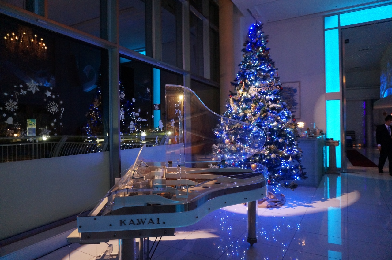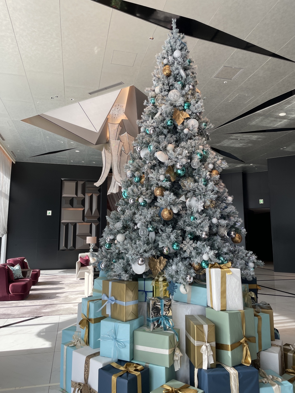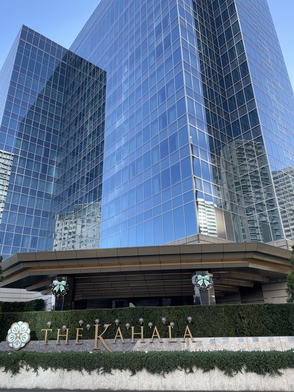 自家用車で向かい、エントランスで車とトランクを預けた後、みなとみらいを散策、その後チェックインへ。14階には一般的なホテルのようなフロントカウンターはなく、ゲストごとにデスクで手続きをするレセプションであるため、順番待ちが発生しますが、クリスマスツリーの前で写真を撮ったりソファで寛いだりしているうちに迎えのスタッフがやって来ました。デスクでの落ち着きのある解かりやすい説明には安心感をおぼえました。