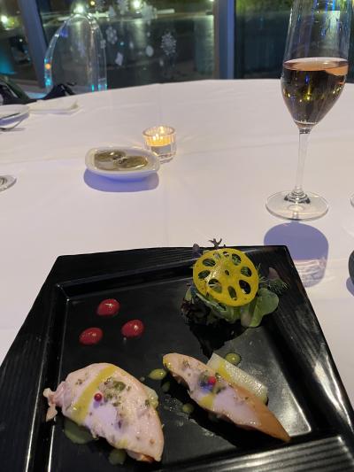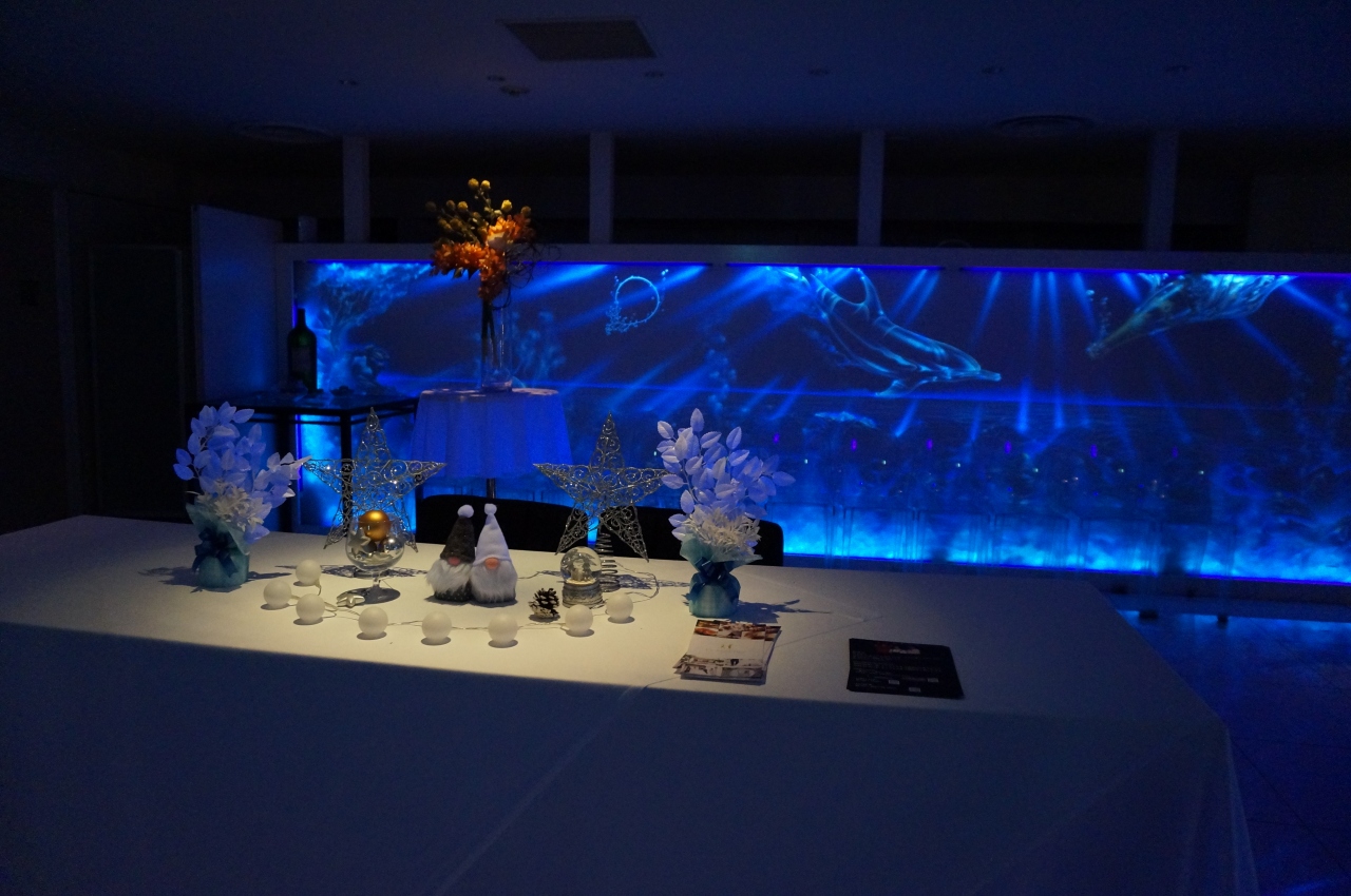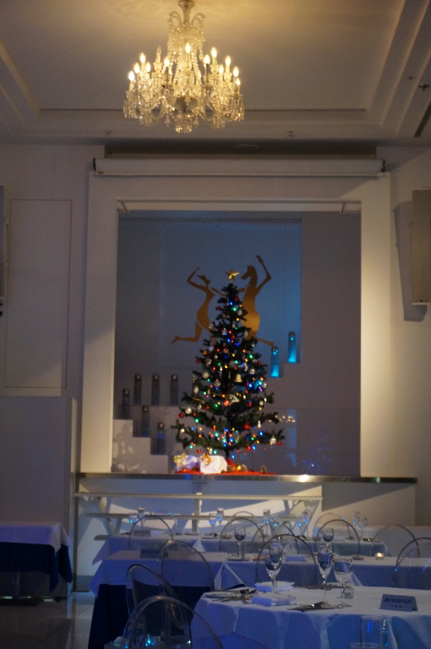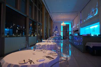 クリスマス直前に予約しておきました。通常は17時半からの営業ですが、予約すると17時からのスタートが可能でした。予約席で埋まってはいましたが、パシフィコ横浜の裏側という人通りの少ない立地でもあり、静かにディナーを楽しめる穴場かも知れません。青を基調とした素敵なレストランです。