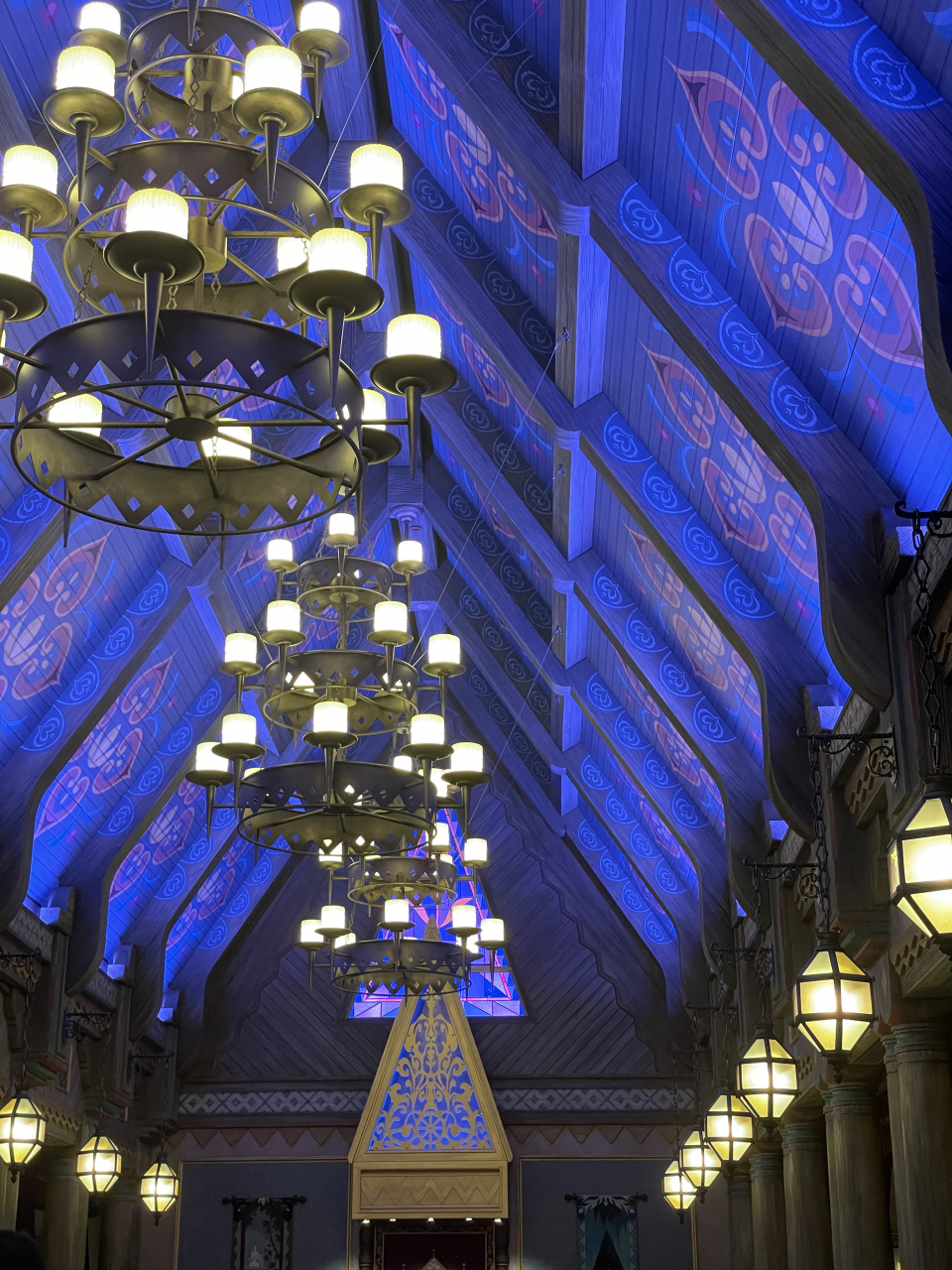 TDSのファンタジースプリングスエリア内に建つアレンデール城のバンケットルームという設定のレストランです。ランチを「モバイルオーダー」で確保しました。「スタンバイパス」で時間が決まったラプンツェルの前の時間帯で押さえました。