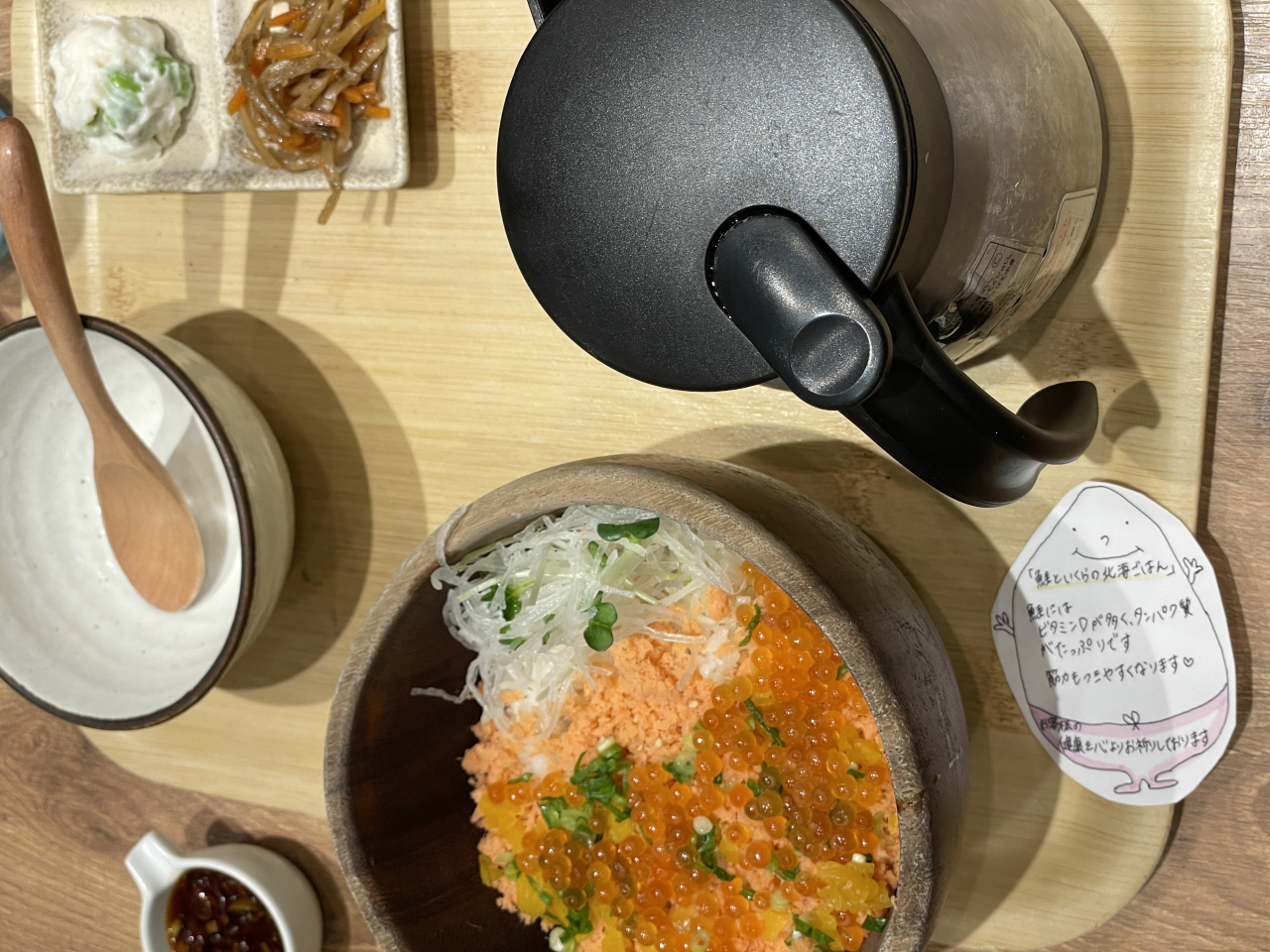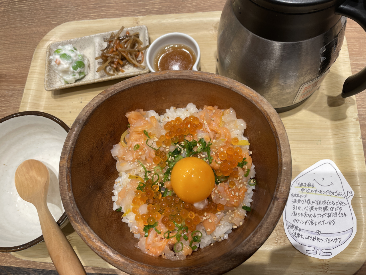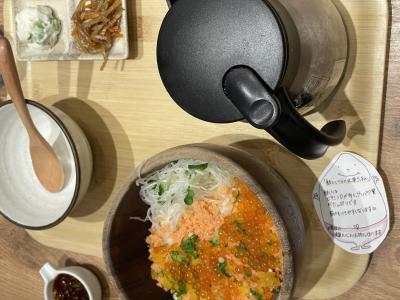私は「柚子香る帆立とサーモンたたきごはん」を注文しましたが、いくらもたっぷりかけられていて、おまけに中央にのせられた卵黄をくずしながら食べるなんて、美味しくないはずが無い食べ方です。お出汁も上品な薄味でした。他の3人が選んだメニューも、皆満足できるものだったようでした。- 旅行時期