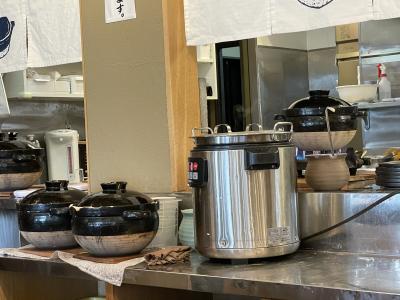 平日でも到着が昼過ぎとなったので、満席で少し待ちました。ほどなくカウンター席に案内されました。ここからだと炊き上がってゆく土鍋が見られてテンションもさらに上がります。