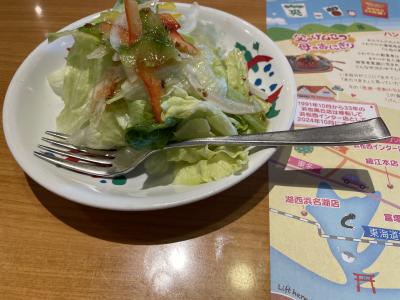 新東名を見上げる田子の月の鷹岡店でお土産を購入し、ふと隣の「さわやか」を見ると駐車場が空いていました。「今だ!」と車を駐めて入店したのが10:50。少し出遅れていたので12組31分待ちでしたが、そこからほぼ30分で「店舗にお越しください。まもなくご案内いたします」との連絡が来ました。