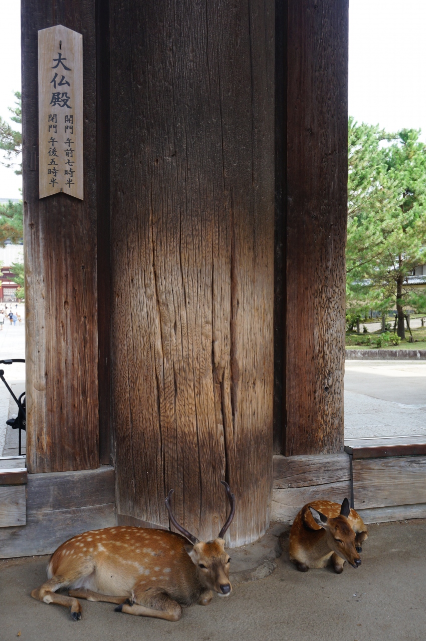 特に猿沢池からの眺めも美しい五重塔は奈良のランドマークとなっており、子どもの頃奈良市に暮らしていた私だけでなく、多くの市民に親しまれているのですが、なんと今回訪れた時には118年ぶりの修理が始まっており、工事用の囲いに覆われてしまっておりました。残念極まりない状態でしたが、それでも多くの鹿たちに出会えました。ホッとします。