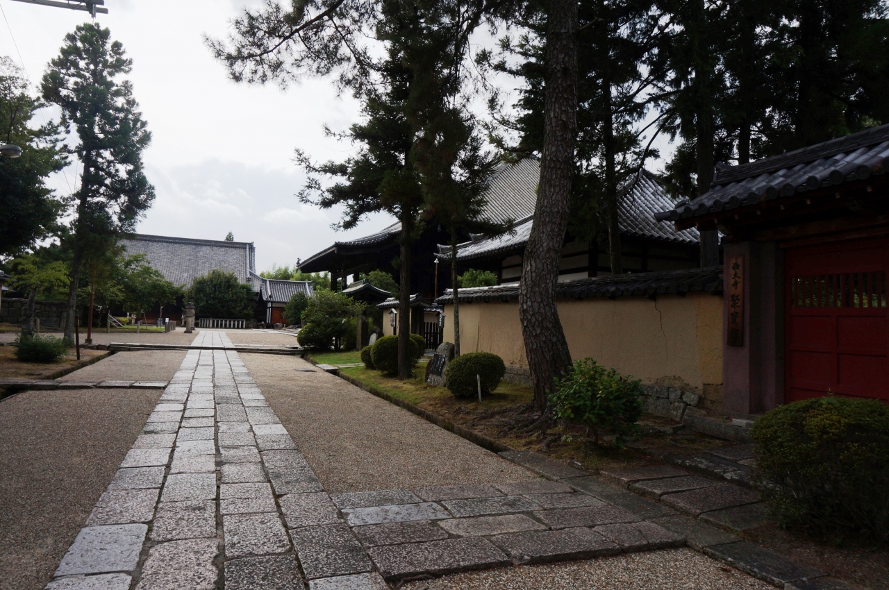かつては14万5千2百坪という南都七大寺にふさわしい壮麗な大伽藍を擁していたそうですが、現在の寺域は約1万坪弱です。それでも広く静かな真言律宗の総本山で、心が落ち着く空間でした。東門から入って最初に右前に建つ四王堂で拝観受付をします。四王堂のほか、本堂や最も奥にある愛染堂の三堂共通拝観券が渡されます。