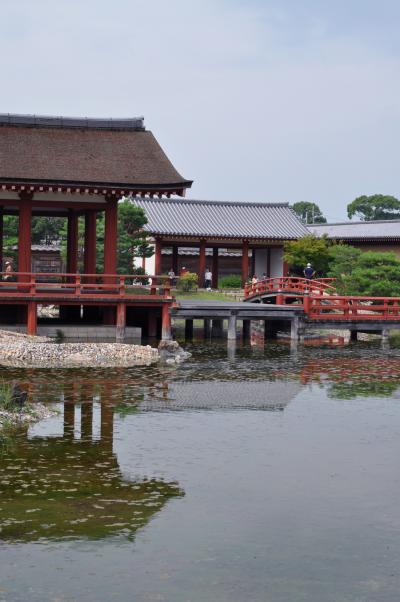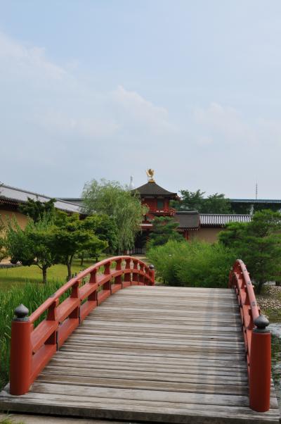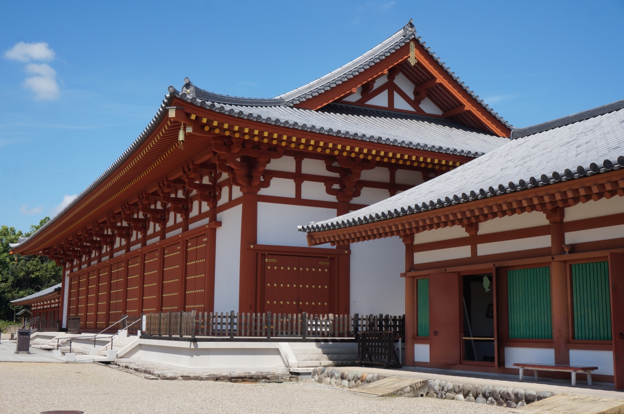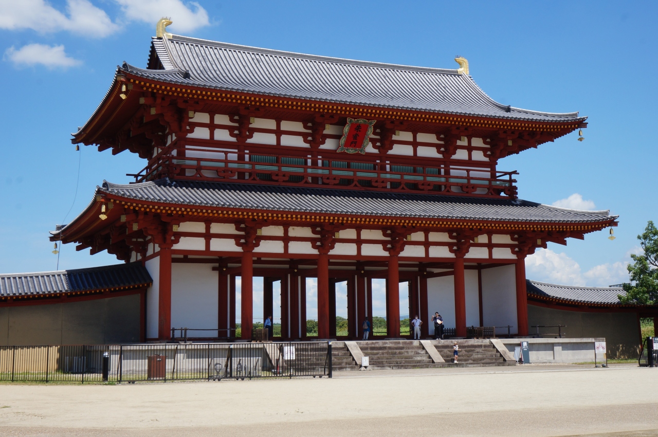 朱雀門までの朱雀大路の距離以上に近鉄奈良線を越えた向こう側に建つ大極殿まではかなりの距離があり、陽射しを遮る場所はほぼありませんので、夏場などは熱中症にご注意を。朱雀門の西南にはカフェ等エアコンが効いているスペースがあります。