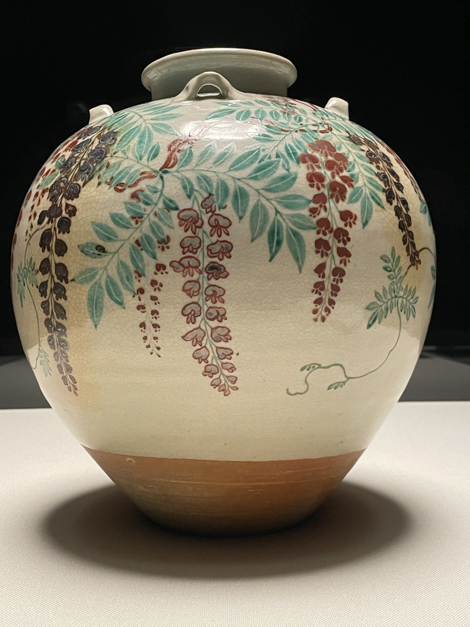 企画工芸展は、人間国宝の方から注目の若手まで、その道を究めようとする作家さん20名の技と思いが形になった作品ばかりでした。多様な素材感も魅力でした。私が特にコレ欲しい!と思った作品(もちろん非売品ですが)は信楽焼の壺・香合・棗などでしたが、多くの来場者が取り囲んでいたのは、「森羅万象ポケモン壷」でした。登場するポケモンの数はなんと500匹以上! ベースとなっているのは素焼きした器に呉須(青色の顔料)で線を描く「染付」の技法だそうです。突然野々村仁清作の国宝が展示されているのですが、皆さん素通りでした。こちらもお見逃し無く!