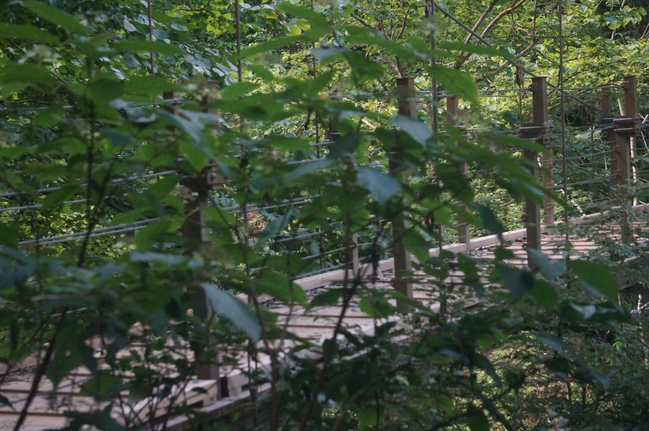 チーズケーキソフトで少し休憩したら、自然研究路の4号路経由で下山です。山歩きの楽しさを味わえ、途中には吊り橋など見所もあるオススメルートなのですが、かなり狭い所もあるので滑落にも注意しなければなりません。パンプスで登っていた女性客は相当コワかっただろうと思います。今日は上り下りの登山者が多過ぎ、途中で何度も立ち止まってお互いに道を譲り合う必要がありました。こういうことを当たり前で出来るのが日本人登山者の良いところです。さらなる下りはリフトやケーブルカーを利用せず1号路で山麓まで一気に下りたのですが、意外に傾きがきつい下り坂なので想像以上に膝などにキます。逆に登って来る方々は途中の平坦な所に相当の人数が滞留して休憩をとっていました。高尾山のケーブルカーは日本一の急勾配を上ってゆくことで有名ですから、当然と言えば当然でした・・・。