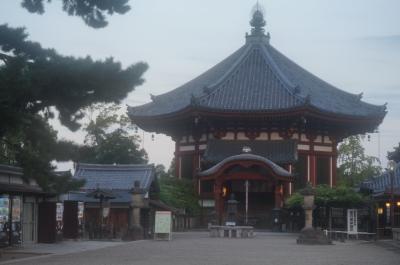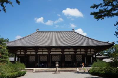 朝一番、鹿に挨拶しながら南大門から参道を通って大仏殿に向かいました。中門に突き当たって西(左)に進んだ所で拝観料を支払う入口はさほど混んではいませんでしたが、廻廊に囲まれた大仏殿(金堂)手前の広場では記念写真の撮影に勤しむ中国人が多くいました。一方で大仏殿内に入ると欧米人が目立ち、かなり時間をかけて丁寧に見学しており感心しました。何度拝んでも盧舎那大仏のお姿は息を呑む迫力と有難さがあります。御朱印も殿内でいただけますが、こちらは外国人が列ばないからか空いていました。