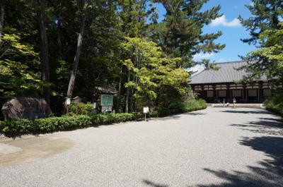 次に二・三・四月堂方面へ向かうには、出口を出て左(東)方向へ進みます。そこには二月堂参詣道とありましたが、手向山八幡宮の参道でもあります。鳥居の前で欧米人が撮影していたので手前で立ち止まって待っていたところ、英語で丁寧にお礼を言われました。多くの外国人観光客は当然のコミュニケーションが取れるというのが、今回の旅での率直な感想です。手向山八幡宮にお詣りした後左(北)へ進むとすぐに三月堂とも呼ばれる法華堂があり、向かい側(西)には四月堂(三昧堂)があります。此処まで車で来るには、事前に許可証の申請が必要です。