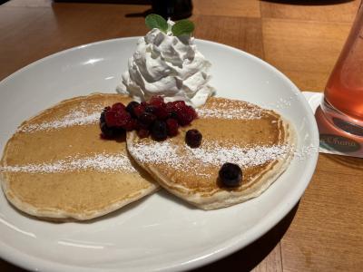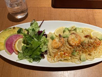 ハワイアンなカフェは各所にありますが、ここはファミレス感がありそうだと勝手に思い込み、行ったことがありませんでした。ところが入店してみると、まずココナツの香りに包まれ一気にテンションアップ! 「アロハァ~」はどの店でもお約束ですが、座席の作りも複数種類あり、何よりファミレスの安っぽさや窮屈さがありませんでした。BGMももちろん「カイマナヒラ」などハワイアン!!ランチメニューから、私が「海老とアボカドの塩レモンパスタ」、家内が「サーモンアヒポキDON」を注文しました。どちらも水準以上と言える味でしたが、何よりもパンケーキ2枚とドリンクが付いているのがうれしい! パンケーキにたっぷり添えられたクリームは甘さをかなり抑えてあってGOODでした。「マハロォ~」に見送られる頃には、今度はディナーに訪れたいと思うようになっていました。