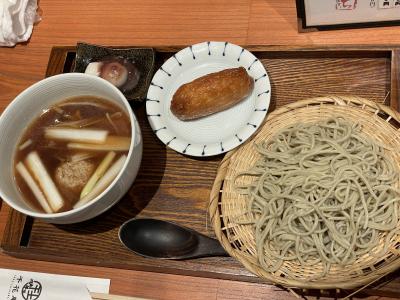長男は鴨ざるをチョイス。私は日替わり天ざるにしました。二人ともひとくちいなりを足しました。