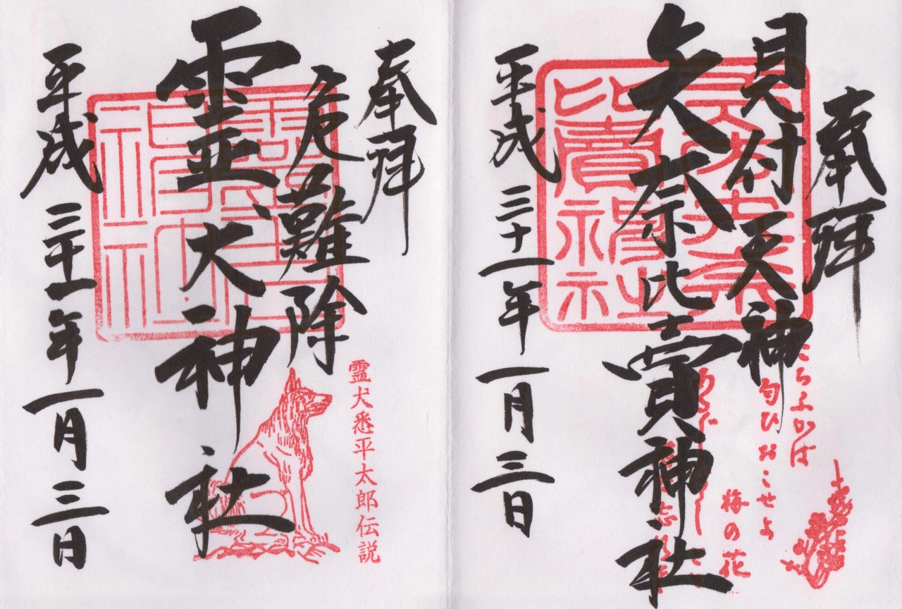 天神さまであるとともに霊犬伝説ゆかりの神社なので、合格祈願に加えてペット同伴の参拝者が目立ちました。立派な大型犬をたくさん目撃しました。しっぺいみくじは人気のようで、なかなか可愛いです。名物の粟餅も素朴な味わいでした。- 旅行時期