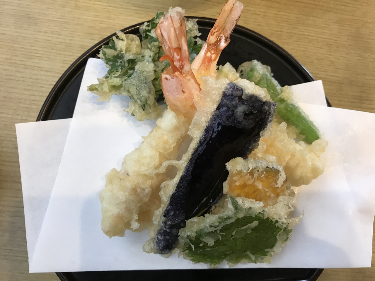 私はもりそば、家内は温かいかけそば、二人で天ぷらもシェアしました。しっかりしたコシのある素直なお蕎麦でした。