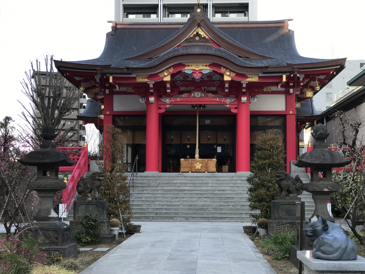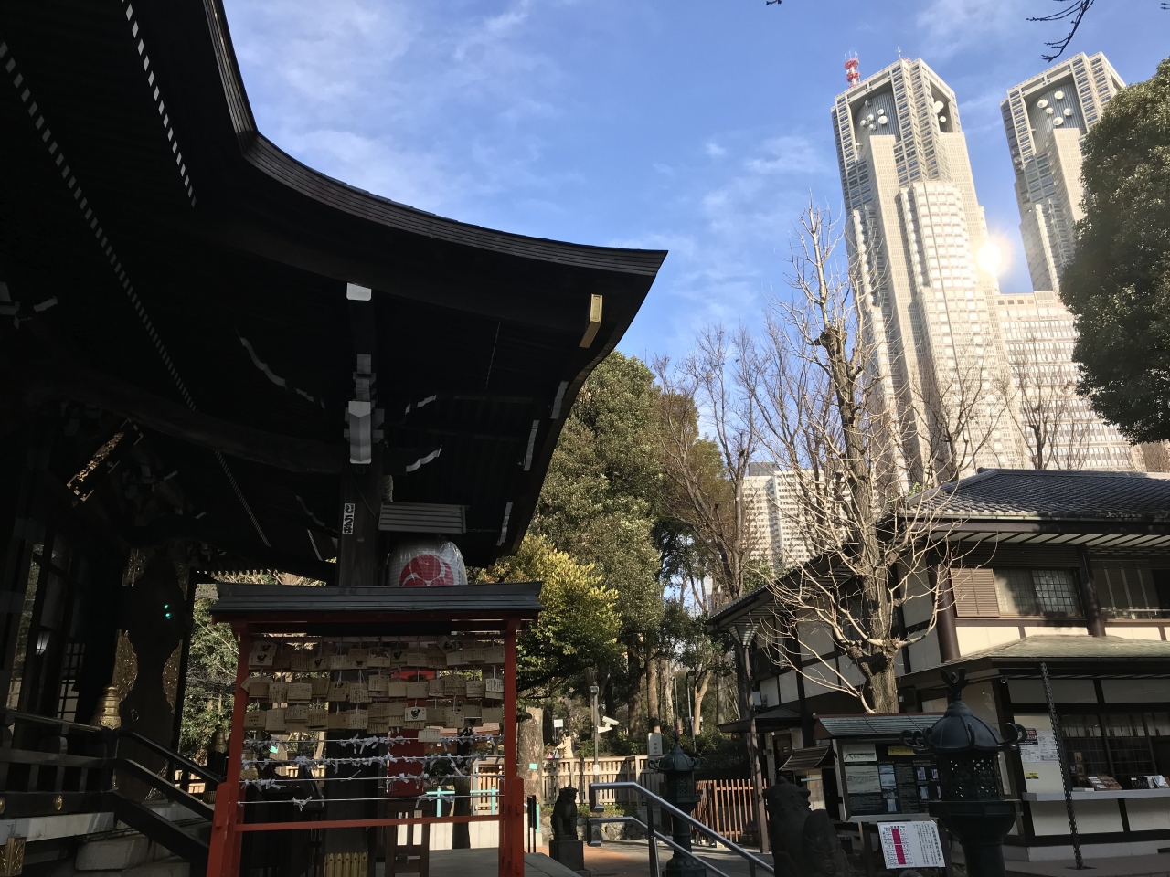 以前、西新宿でのセミナーへ参加する前にも散策して訪れました。丸ノ内線に後から出来た西新宿駅が最寄り駅です。今回も土曜ということで新宿中央公園はにぎわっていましたが、成子天神下という交差点名にもなっている割には訪れる人はまばらでした。青梅街道に面した正面から表参道を進むと、七福神が左右で出迎えてくれます。鳥居の先の美事な門をくぐると、天神社らしく撫牛が。正面の本殿も華やかです。ちょうど梅も咲いていました。御朱印は、本殿の右の授与所窓口の窓を開け、呼び鈴を押すと受け付けていただけます。外国人も来ていました。その後北側の参道へ抜けると、立派な富士塚があったのですが、周囲の高層ビル群の谷間で何か淋しく佇んでいるようにも見えました。