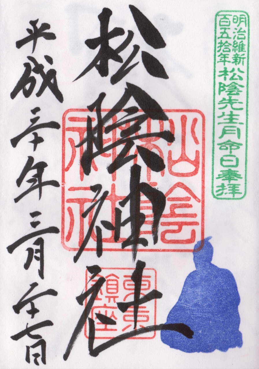 お参りするなら毎月27日がオススメ。御朱印に「月命日奉拝」と印が捺されます。3月だったので、境内や墓所・松下村塾の桜が美事でした。- 旅行時期