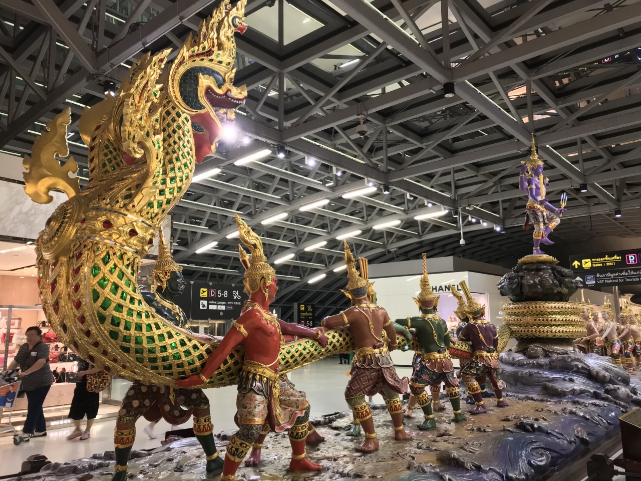 タイへの旅の雰囲気を盛り上げてくれる像などがあちこちにあり、素敵な空港です。- 旅行時期