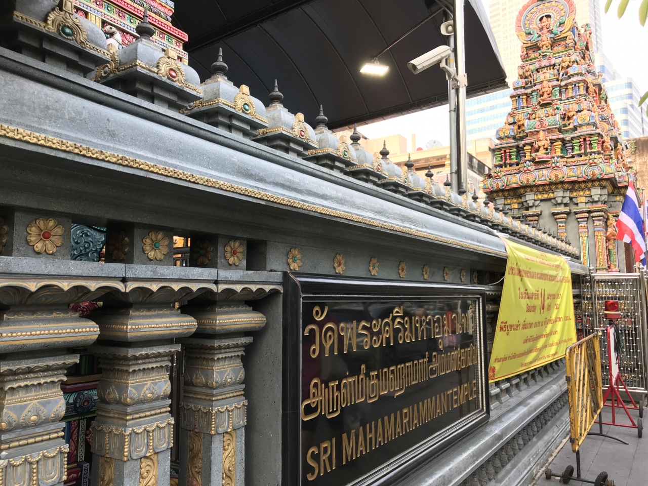宿泊しているホテルからシーロム通りを西に歩くと、朝市で有名な路地がありました。その入口に建つヒンズー教寺院ですが、何と言っても極彩色のその姿に魅了されます。さらに、道行く人々がみな、正面で自然に手を合わせているのを目にし、信仰が日常に根づいているということを感じてさわやかな心持ちになりました。