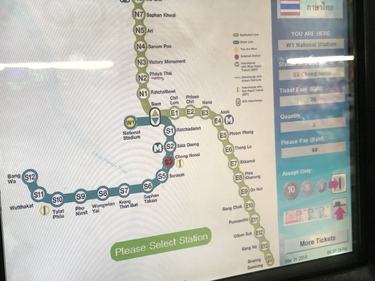 市内を車で移動するのは一苦労ですが、ホームドアと冷房完備のスカイトレインは、チケットをすばやく改札機に通して速やかに抜ければ、極めて快適です。ゆっくり抜けようとした外国人が挟まれ、割と痛そうな声を上げました。