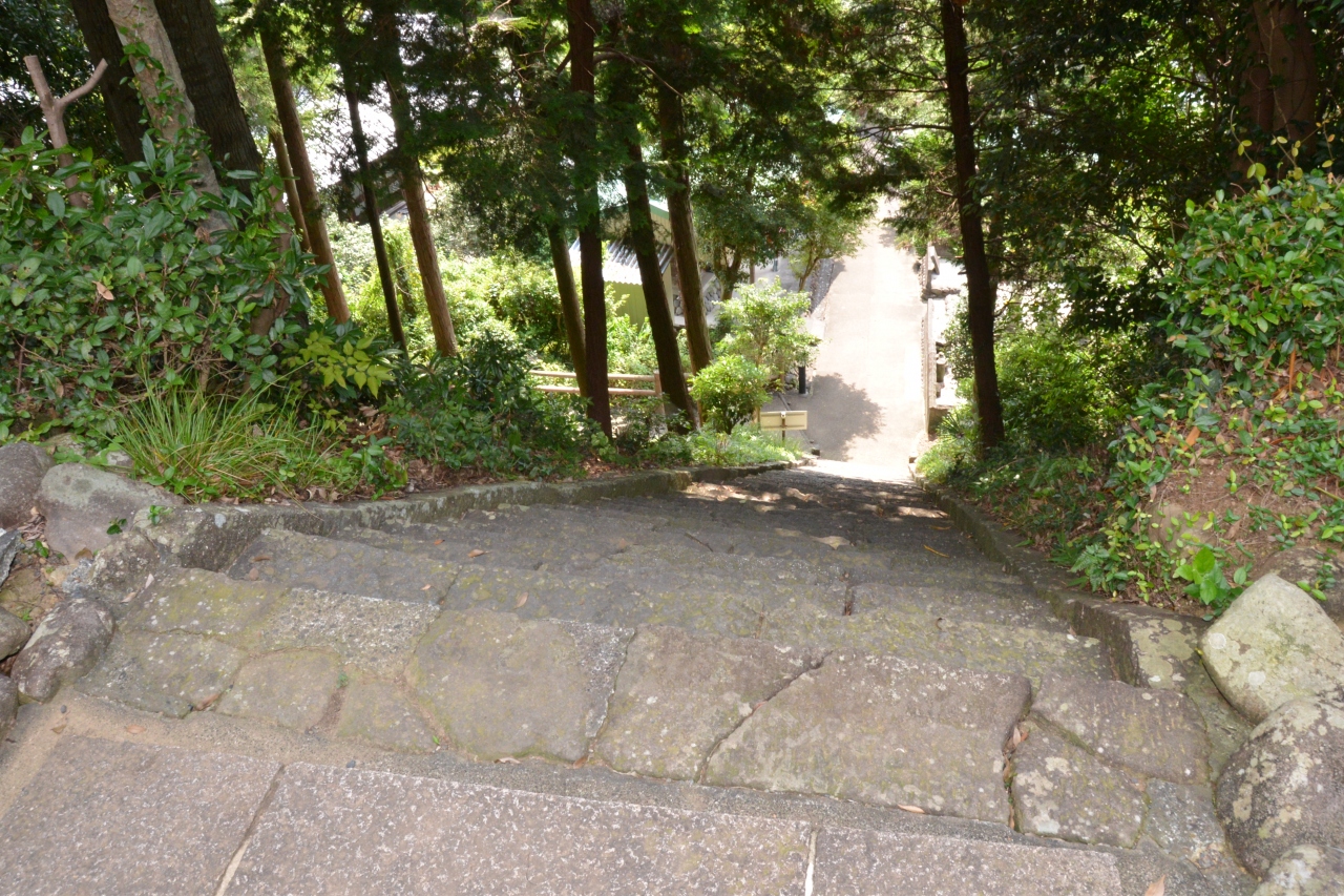 そこから山を上るのですが、正面の階段は昇りに使いましょう。下りは怖いほどの傾斜です。右側に女坂と称するなだらかな階段があります。