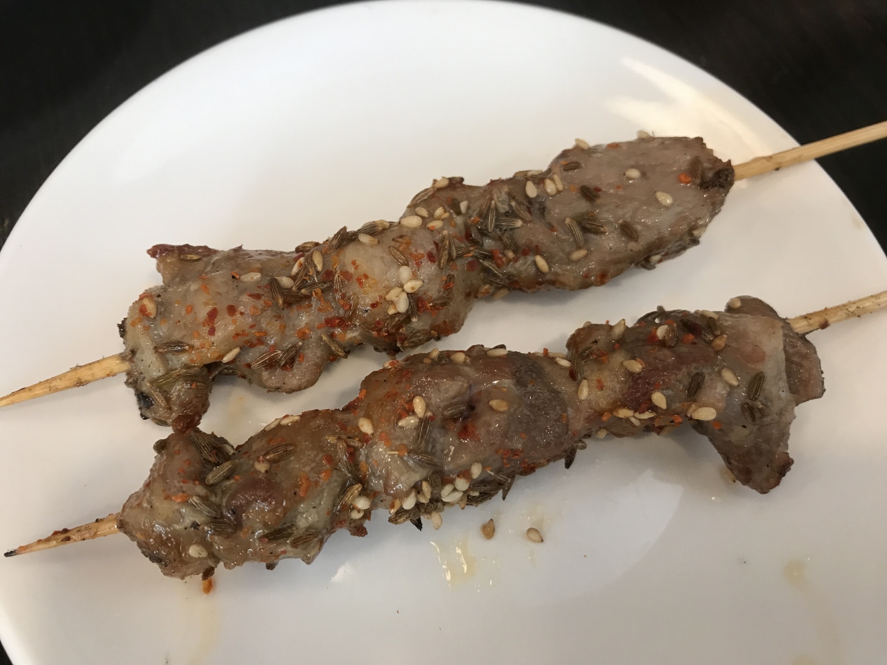 ラム肉の串焼きはありがたいことに2本セットがありました。スペアリブと同じと思われる多種のスパイスが振りかけられているのですが、これが複雑なれど深い旨さを演出してくれています。こういう料理が病みつきになるのです。