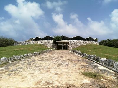 西港に続く県道沿いに高台に向かう謎の階段…。何の案内板もないのできっと何もないだろうと思いながら登って見るとなんと「玉置半右衛門」の碑がありました。南北大東島の開拓者として島内ではとても有名なお方。なのになぜこんな寂しい所に…。しかし、ちゃんと毎年11月1日にはその遺徳を偲んで例祭が行われているようです。