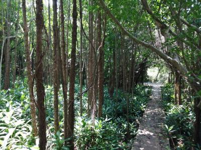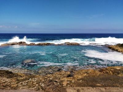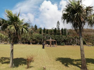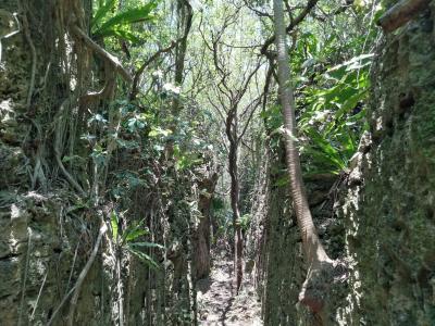 南大東島はその誕生以来、一度も他の大陸と陸続きになったことがなく、動物や植生は独自の進化を遂げてきました。特に東海岸には様々な植物が生えており、希少な種もあるようです。それ故、国指定の天然記念物となっています。「海軍棒プール」入口にそれを示す「南大東島東海岸植物群落」と書かれた石柱が立っています。