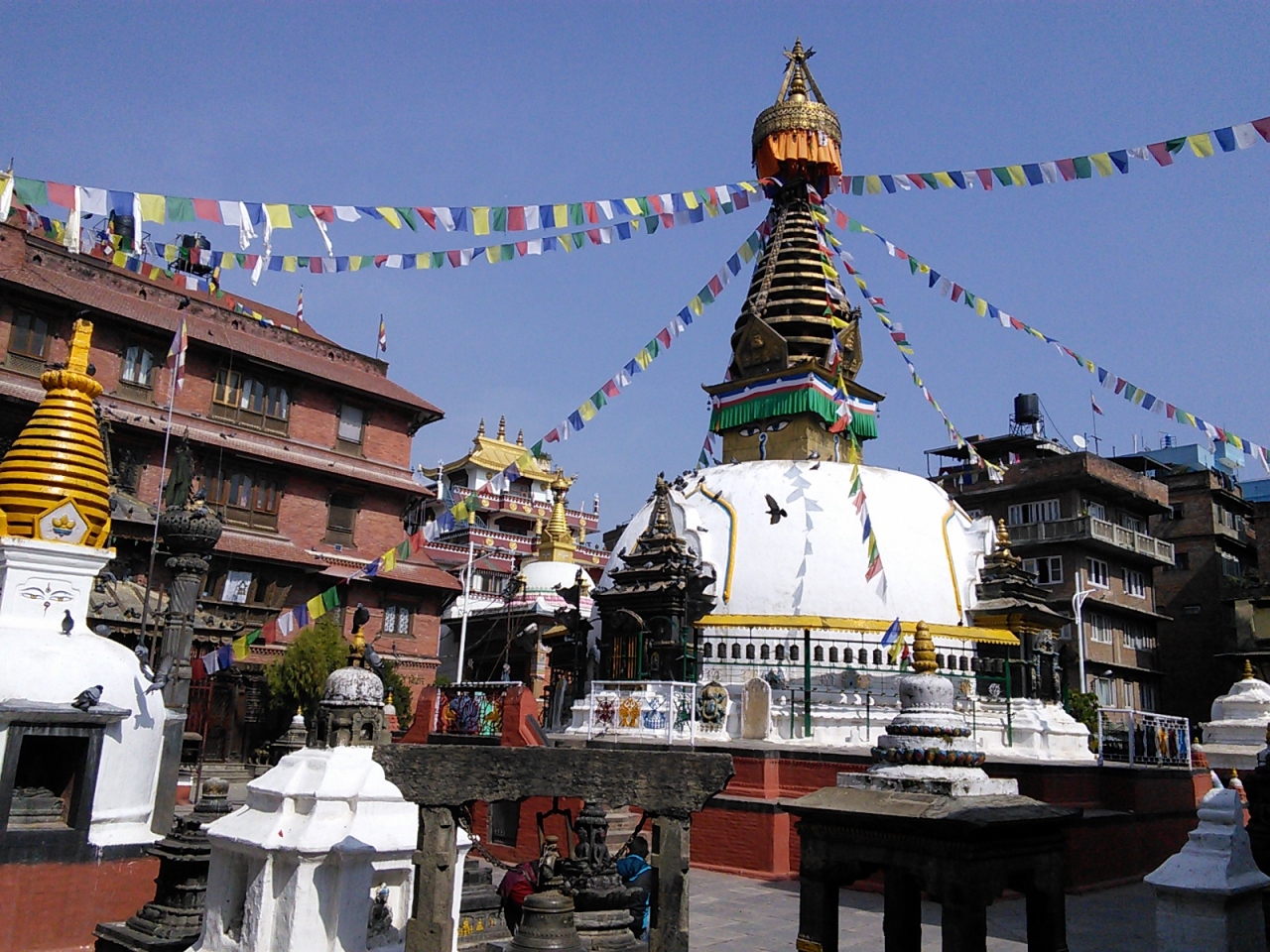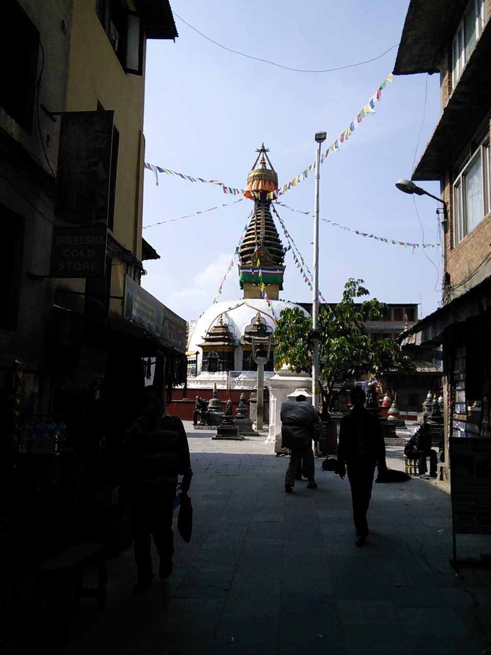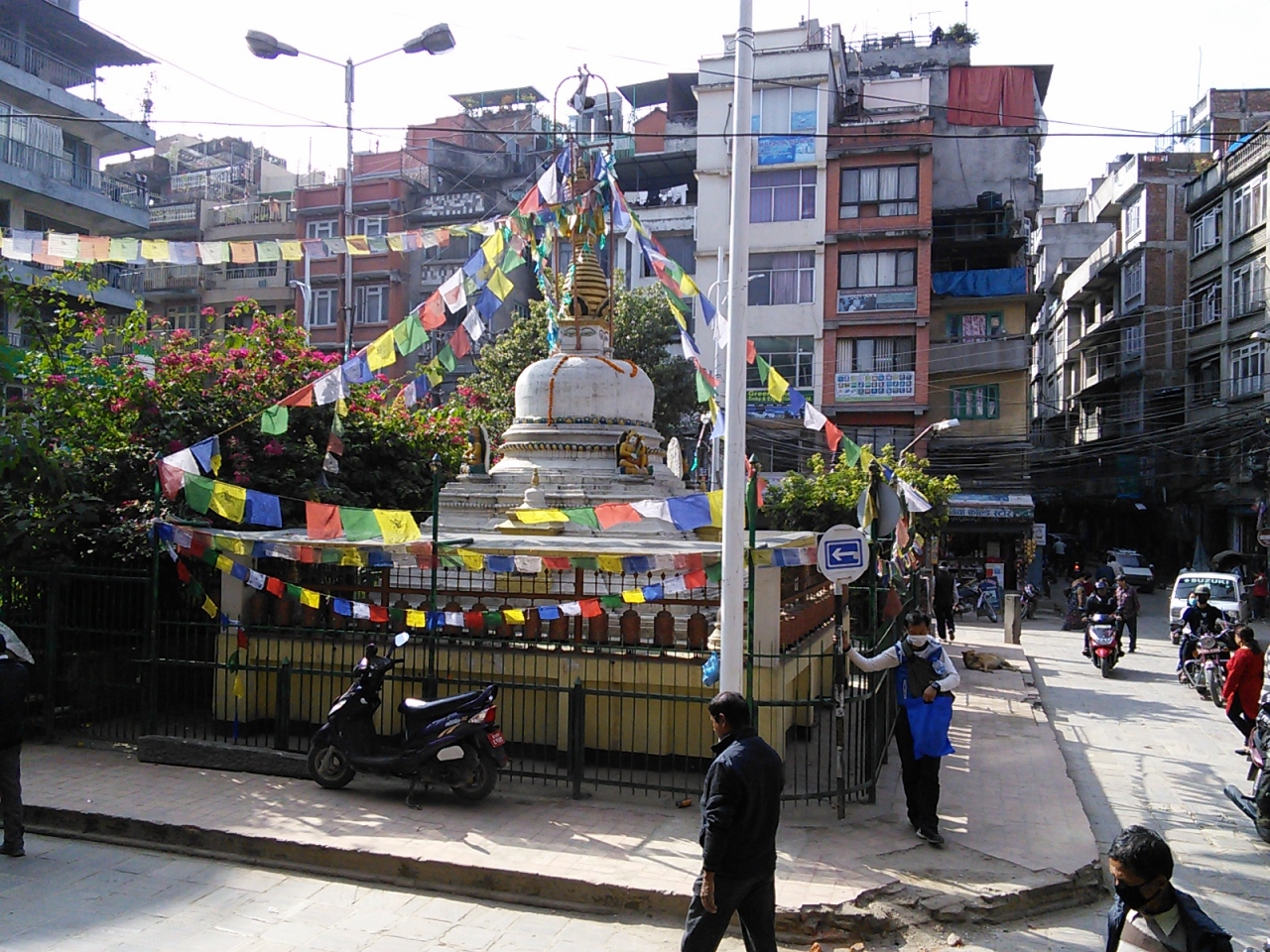 入口は2ヶ所、路地を抜けるとドーンと見えます。ボダナートの小っちゃい版ですが想像以上に大きく広い場所でした。人影はちらほら、ごみごみした旧市街のなかにあってひっそりと静かな空間です。ときどき地元の人がやって来てストゥーパの周りあるマニ車を回しています。- 旅行時期