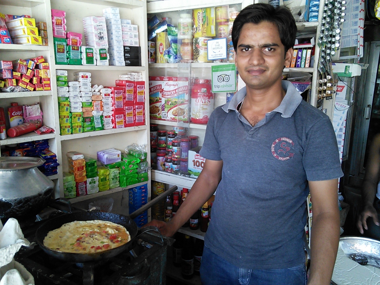 競合?する「omlette shop」の時計塔の北門を挟んだ向かいにあります。創業12年、向かいの店よりは歴史は浅いですが店主のVickyさんの人柄で繁盛してると思いきや食べてる人の姿はほとんど見かけませんでした。同じMasala Cheese Omelette(40Rs)を食べ比べてみましたがチョーハンの方が野菜が多くワイルドな感じ、食べこたえがあります。好みによると思いますがどちらの店もおいしかったです。