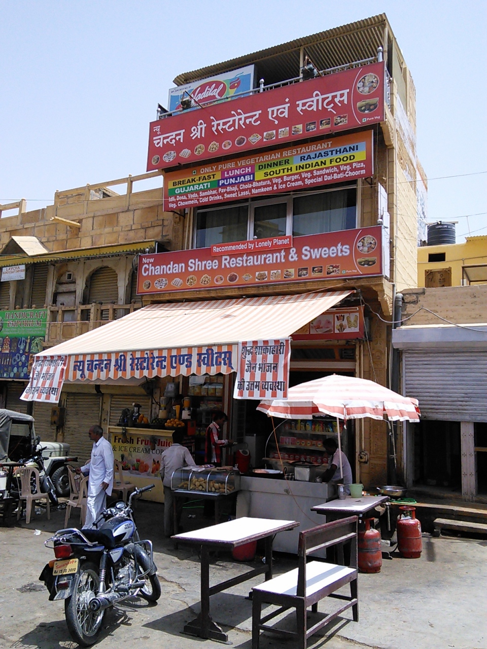 ハヌマーンチョウクからアマルサガール門へ向かう途中にあるインド料理レストランです。格式張らない庶民的な店です。いろいろなメニューがありますがターリー(90Rs)を食べました。ライス、チャパティー、パパド、カレーというか全てがおかわり自由、食べ放題です。米のクオリティーもまずまずでおいしかったです。おなかいっぱい食べられます。