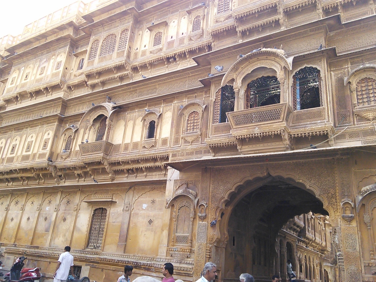 現在も人が住んでいるので内部の見学はできませんが表からだけでも十分見応えはあります。入口にいた人に声をかけられ2Fに上がるとラクダの骨を彫刻、加工した品物を売るショップがありました。5cm程度のガネーシャ像を彫刻したものが1000Rs~。腕輪などもありました。ちなみにラクダの骨は問題なく日本に持ち込めるそうです。