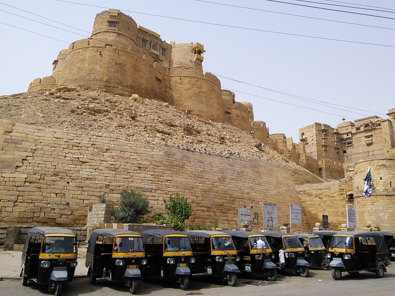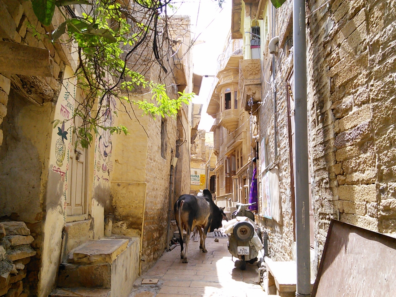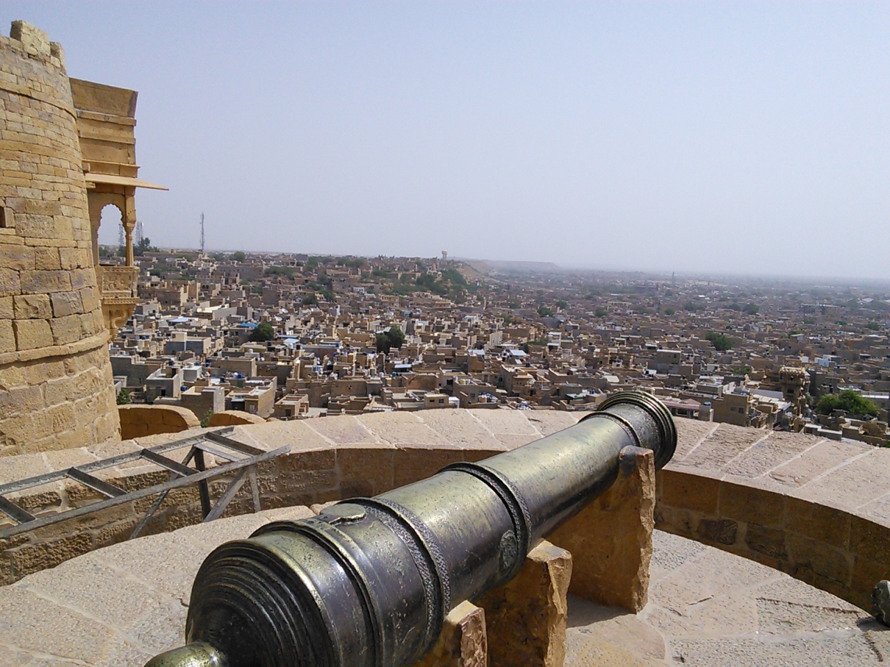 下から見上げると堅牢で威風堂々とした“城”ですが城内にもちゃんとした町があり人々が暮らしているのは驚きです。石で造られた町は趣たっぷりで、細い路地が数多くあり行き止まりも多くまるで迷路のようです。各所に設けられた砲台跡はビューポイントになっていて城下の町の向こうに広がる砂漠を一望できます。城内には他にジャイナ教寺院(200Rs)やフォートパレスミュージアム(300Rs,カメラ持込み+100Rs)があります。