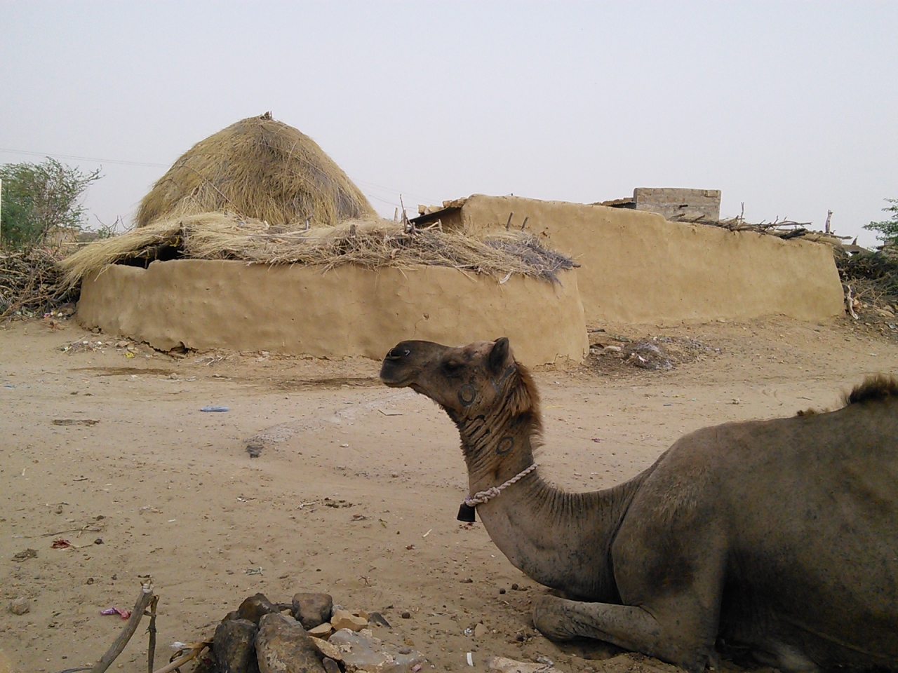 部屋は土壁と茅葺き屋根の円形をした伝統的な建物です。中には簡素なベッドが2つあるだけ。布団は埃まみれというか砂まみれで汚いです。壁にひとつ窓のような穴が開いていますがカギが掛かっていて開けず、ファンが付いてないので暑くて中にいれませんでした。扉を開けておくと砂が舞い込んできて他のスキマからも砂が入ってくるので荷物なども砂まみれになります。結局夜は外にベッドを出して寝ました。共同のシャワー室も明かりがなく真っ暗です。こんな田舎の村まで来て格安のG.Hに泊まり多くを望むわけではありませんが一応お金を取って客を泊まらせるというからには最低限のことはしてほしいと思います。