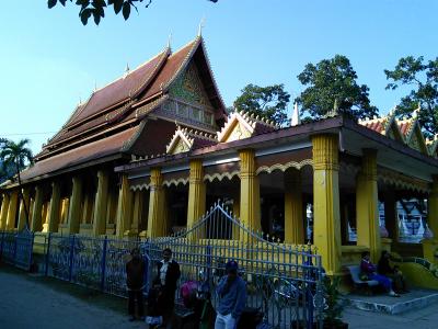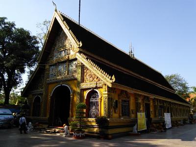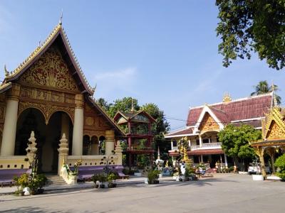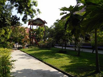 メコン川に近いファーグム通り沿いにあります。夕方には夕陽を浴び屋根がひかり輝きます。境内はさほど広くはありませんが手入れが行き届いて気持ちがいいです。寺の奥の小さな通路を通ると薬草サウナに抜けることができます。