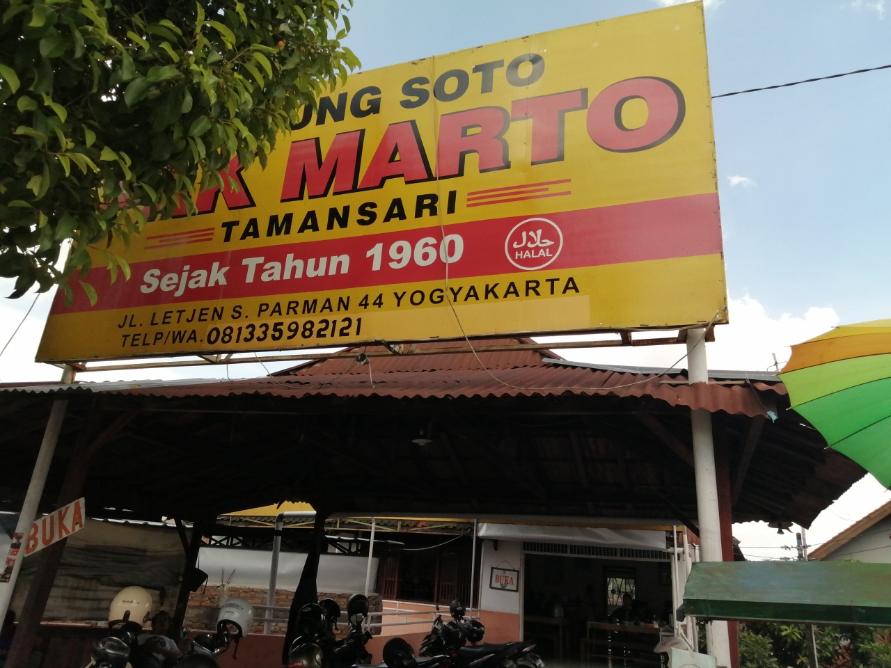 牛肉スープの繁盛店です。日曜の12:00頃行ったら広い店内の6〜7割方の席は埋まっていました。この店の看板メニューである「SOTO PISAH NASI」(17000Rp)をオーダー(メニューの1番上に書かれています)。スープとご飯が別になったセットメニューです。ちなみに2番目の「SOTO CAMPUR NASI」はスープの中に初めからご飯が入っています。