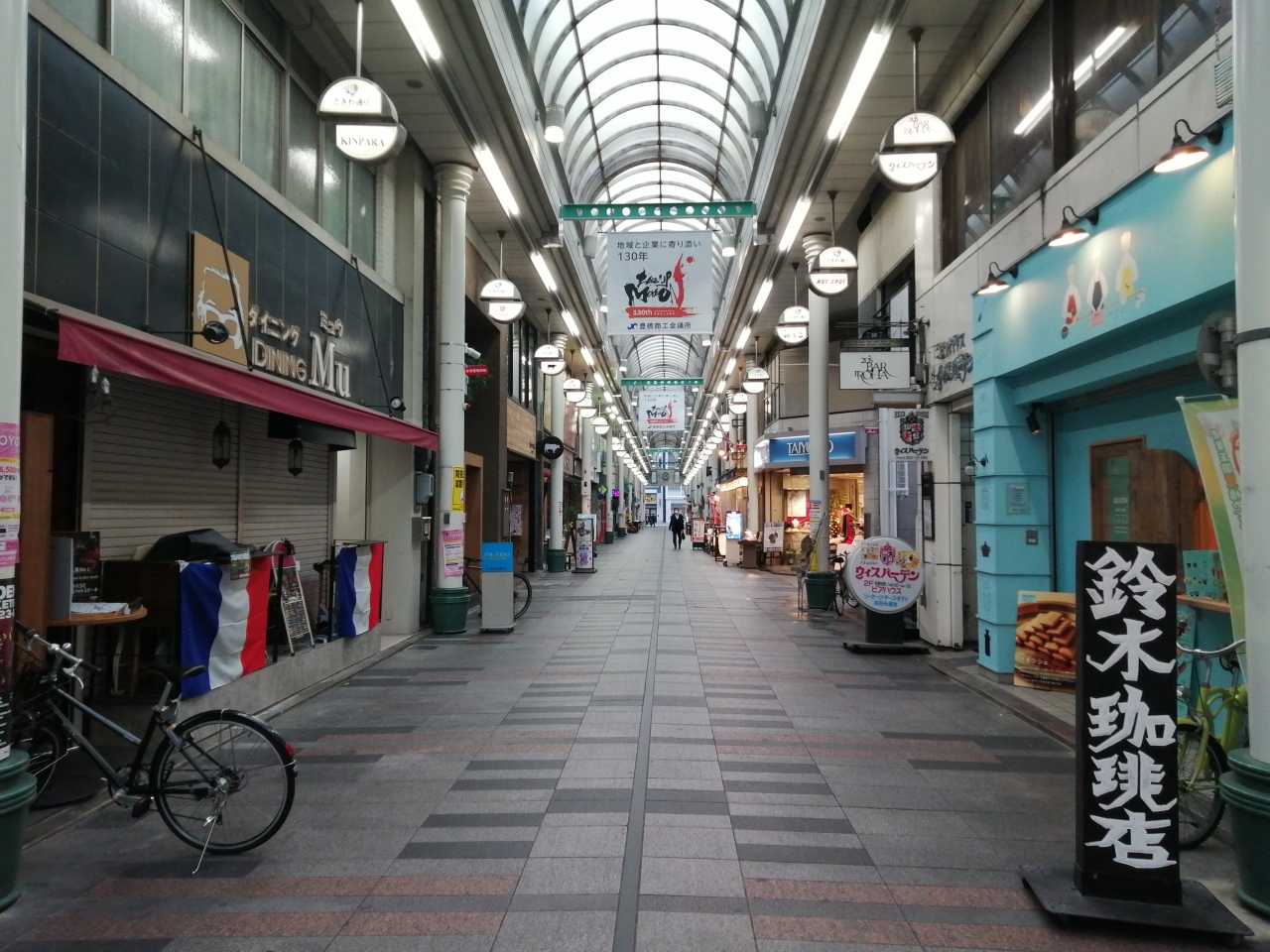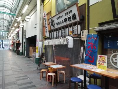 豊橋駅前にある150mほどのアーケード商店街です。このような商店街は全国各地廃れているのが常ですが、シャッターが閉まっている店もいくつかありましたが、明るく清潔でまだかろうじて活気は残っているといった感じ。目立つのは飲食店ですが軽く飲めるような店もあり、呑兵衛には利用価値は高いかなと思いました。