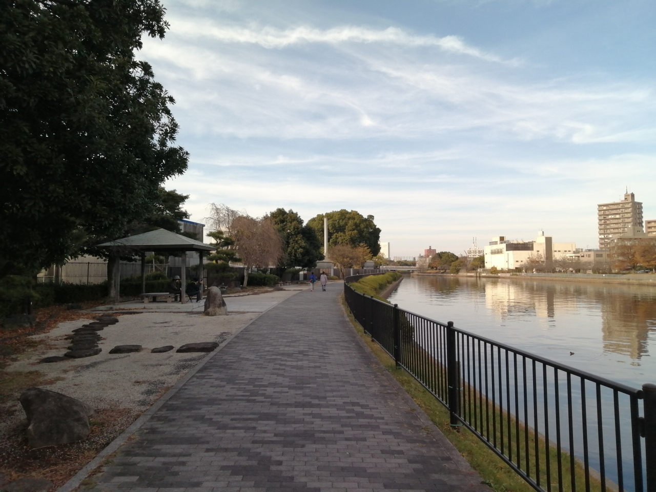 堀川の右岸、白鳥橋と大瀬子橋の間にある遊歩道です。中程に東屋と庭園風の広場がありますが、あまり雰囲気がいいとは言えません。その訳は遊歩道が、とある会社に接しておりその一部が工場の壁。それに堀川の水も汚い。これじゃあ歩いていても気持ちよくありません。はっきり言って名前負けしてるかなと思います。